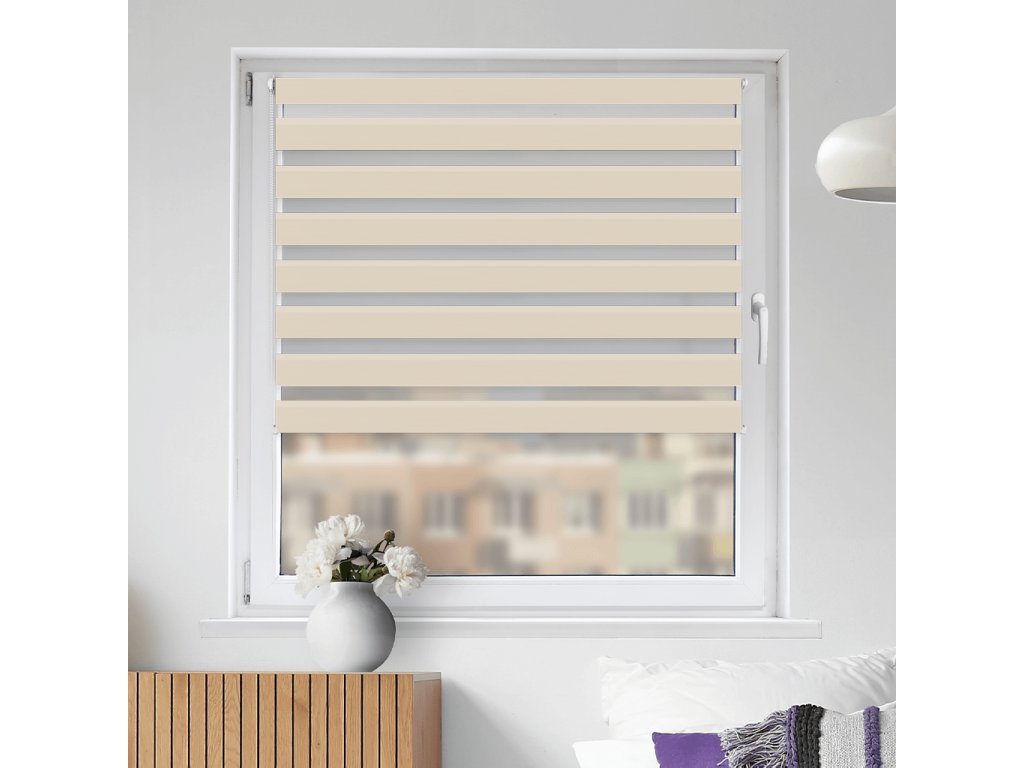 Naša roleta Deň a noc na okno je už zložená. Najobľúbenejšia je roleta Deň a noc v otvorenej kazete bez nutnosti vŕtania, takže ju iba zavesíte na okno. Ďalším spôsobom upevnenia je vŕtanie do okna, do steny alebo do stropu. Inštalácia rolety Deň a noc je vďaka tomuto systému veľmi jednoduchá a rýchla.