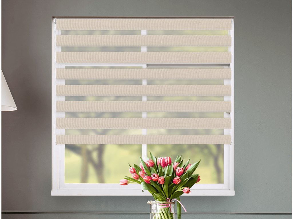 Naša roleta Deň a noc na okno je už zložená. Najobľúbenejšia je roleta Deň a noc v otvorenej kazete bez nutnosti vŕtania, takže ju iba zavesíte na okno. Ďalším spôsobom upevnenia je vŕtanie do okna, do steny alebo do stropu. Inštalácia rolety Deň a noc je vďaka tomuto systému veľmi jednoduchá a rýchla.