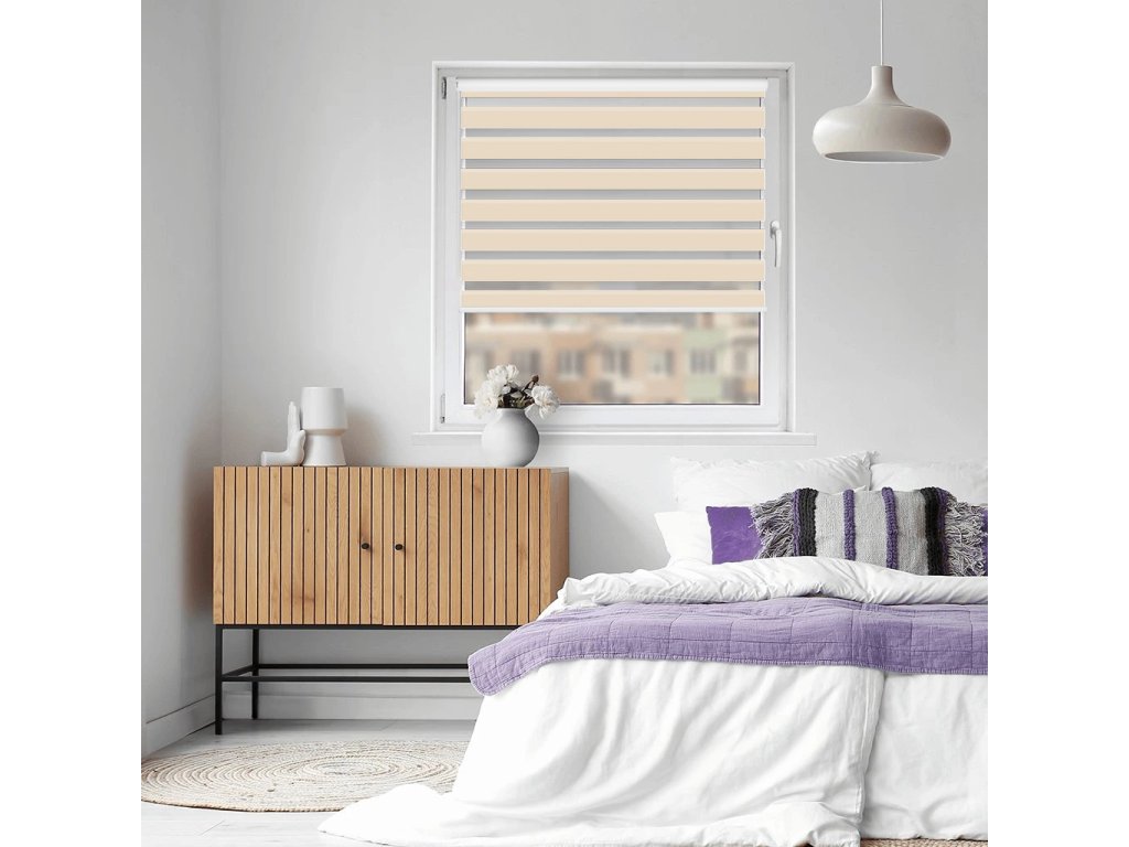 Naša roleta Deň a noc na okno je už zložená. Najobľúbenejšia je roleta Deň a noc v otvorenej kazete bez nutnosti vŕtania, takže ju iba zavesíte na okno. Ďalším spôsobom upevnenia je vŕtanie do okna, do steny alebo do stropu. Inštalácia rolety Deň a noc je vďaka tomuto systému veľmi jednoduchá a rýchla.