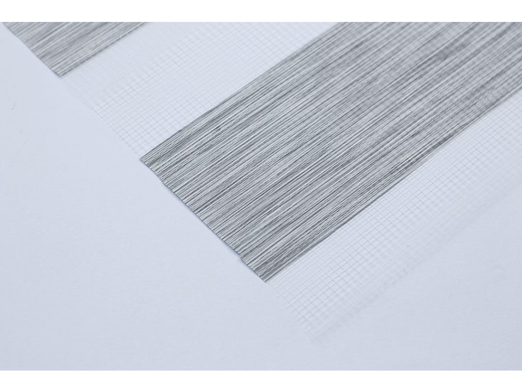 Roleta Oriental sa vyznačuje lesklou melírovanou látkou s nádychom orientu a sieťkou s väčšími okami v priehľadnej časti. Plný pruh látky meria 7,6 cm, priehľadný pruh so sieťkou má 5,5 cm.