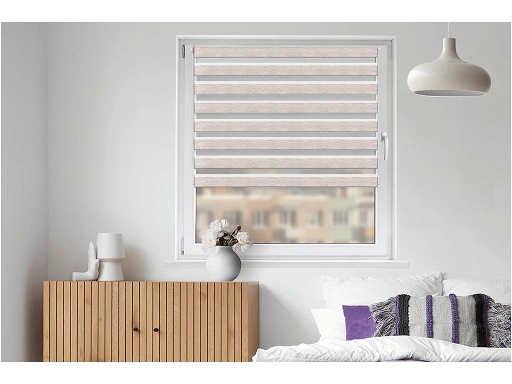 Naša roleta Deň a noc na okno je už zložená. Najobľúbenejšia je roleta Deň a noc v otvorenej kazete bez nutnosti vŕtania, takže ju iba zavesíte na okno. Ďalším spôsobom upevnenia je vŕtanie do okna, do steny alebo do stropu. Inštalácia rolety Deň a noc je vďaka tomuto systému veľmi jednoduchá a rýchla.
