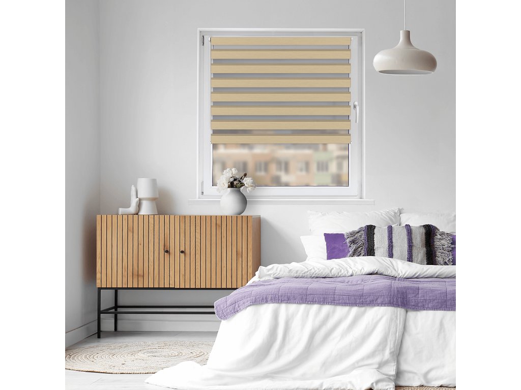 Naša roleta Deň a noc na okno je už zložená. Najobľúbenejšia je roleta Deň a noc v otvorenej kazete bez nutnosti vŕtania, takže ju iba zavesíte na okno. Ďalším spôsobom upevnenia je vŕtanie do okna, do steny alebo do stropu. Inštalácia rolety Deň a noc je vďaka tomuto systému veľmi jednoduchá a rýchla.